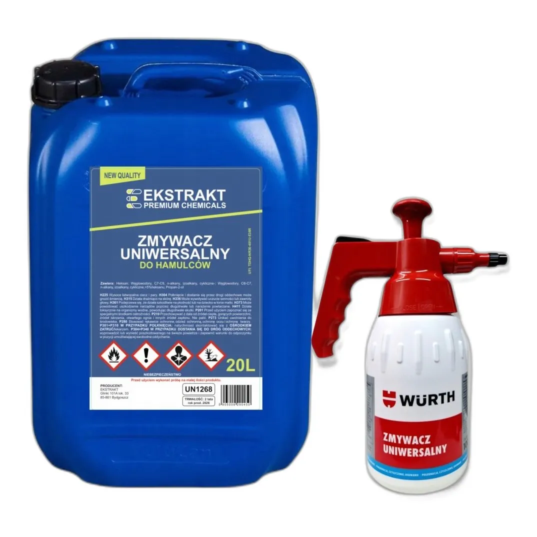 Zmywacz do Hamulców 20L Uniwersalny Brake Cleaner Tarcz + Opryskiwacz Wurth